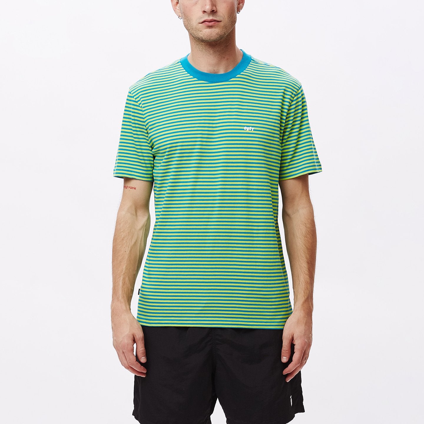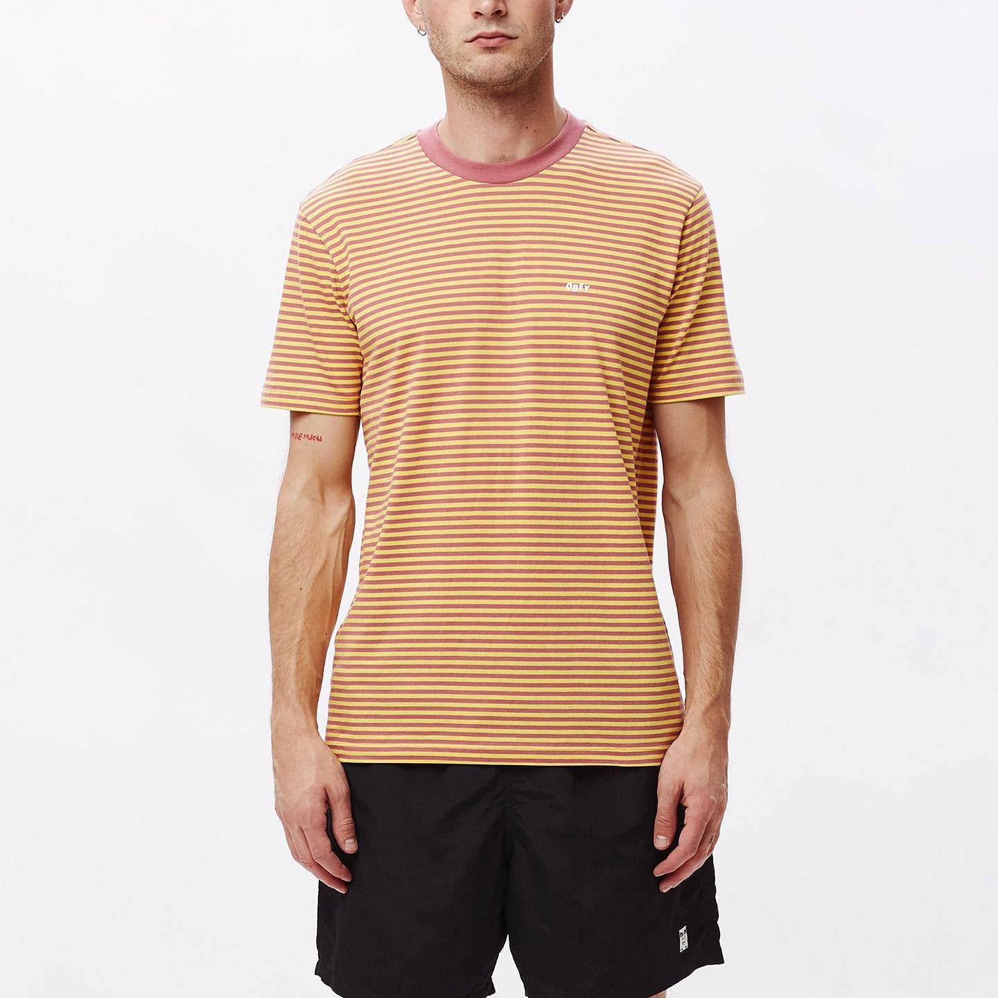 • Striped S/S t-shirt With Obey Print On Chest.