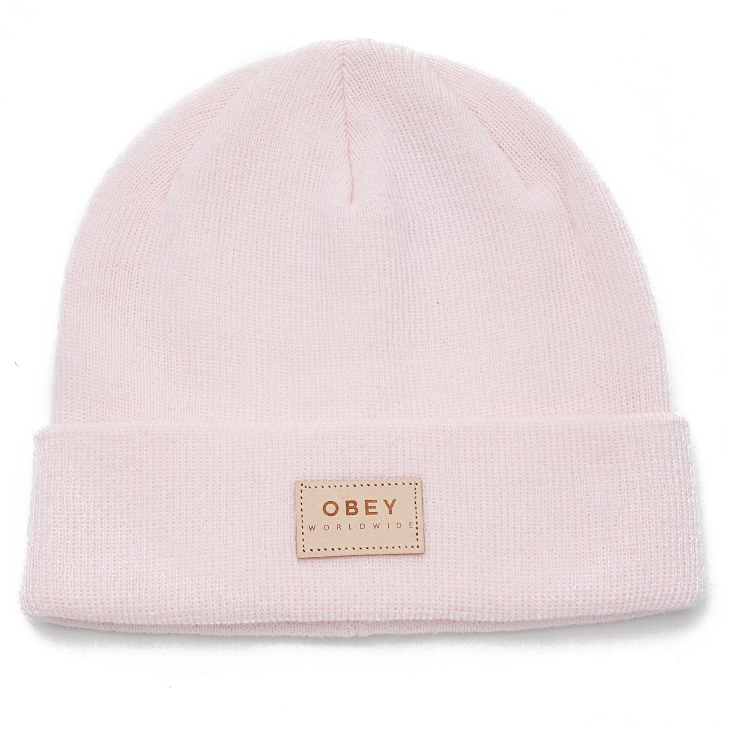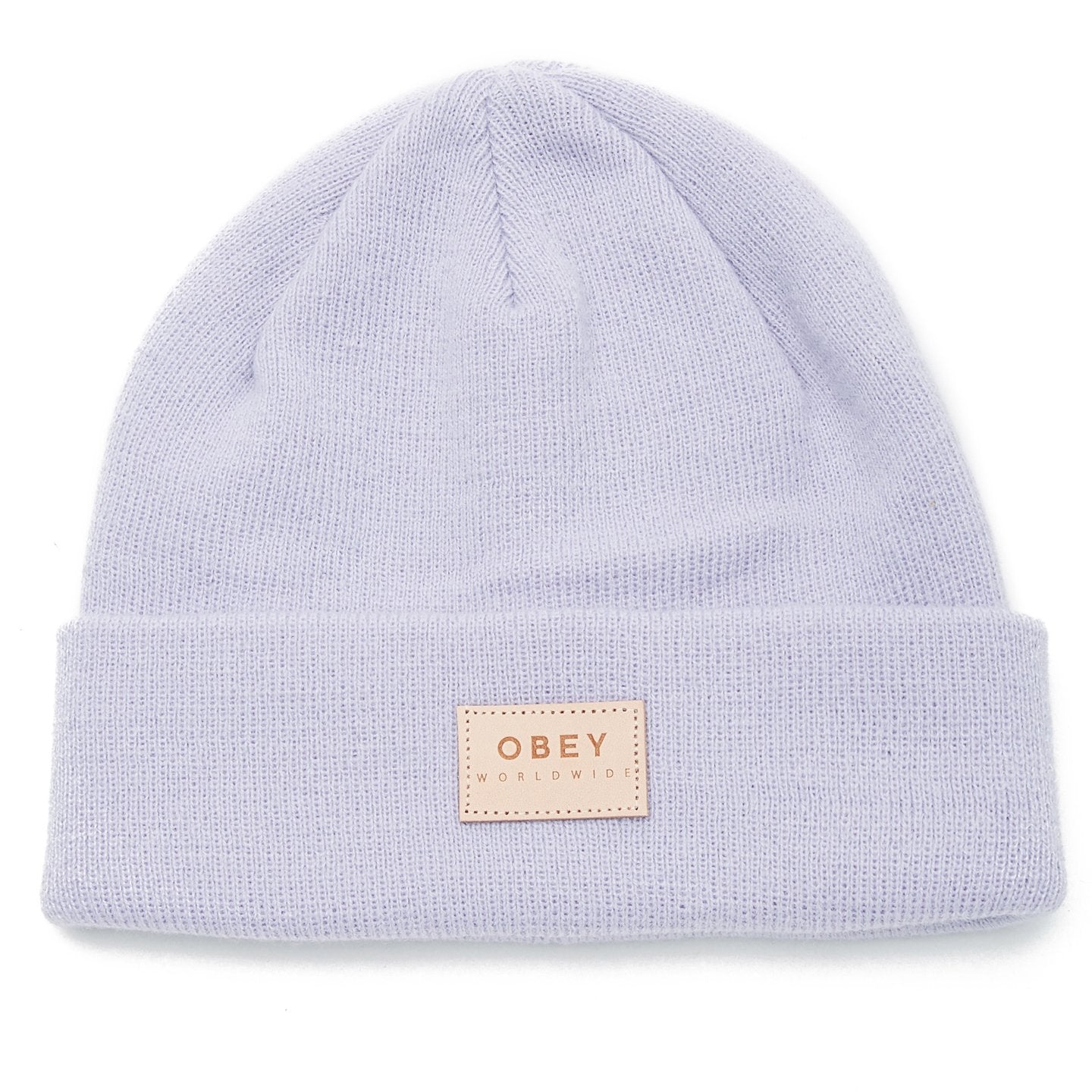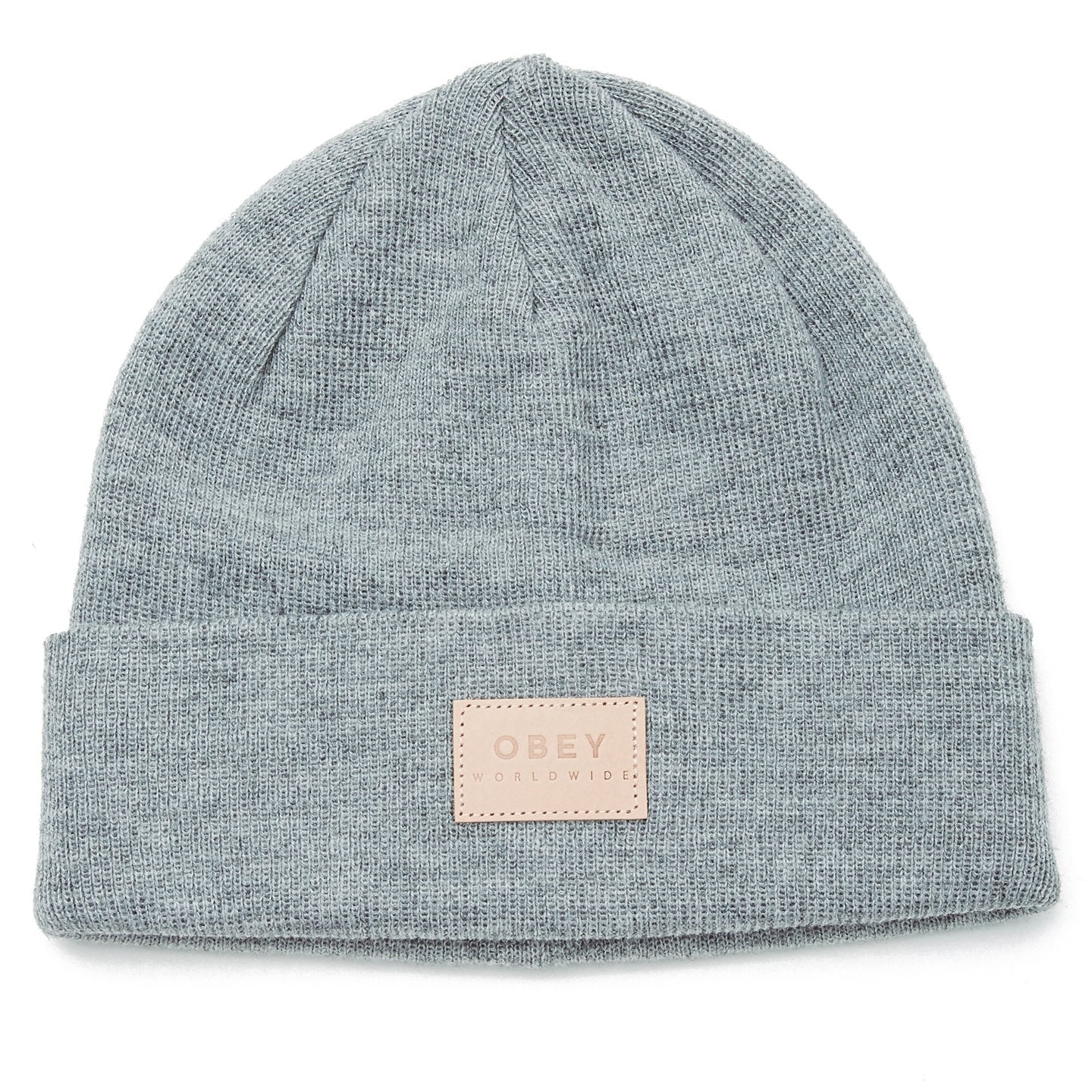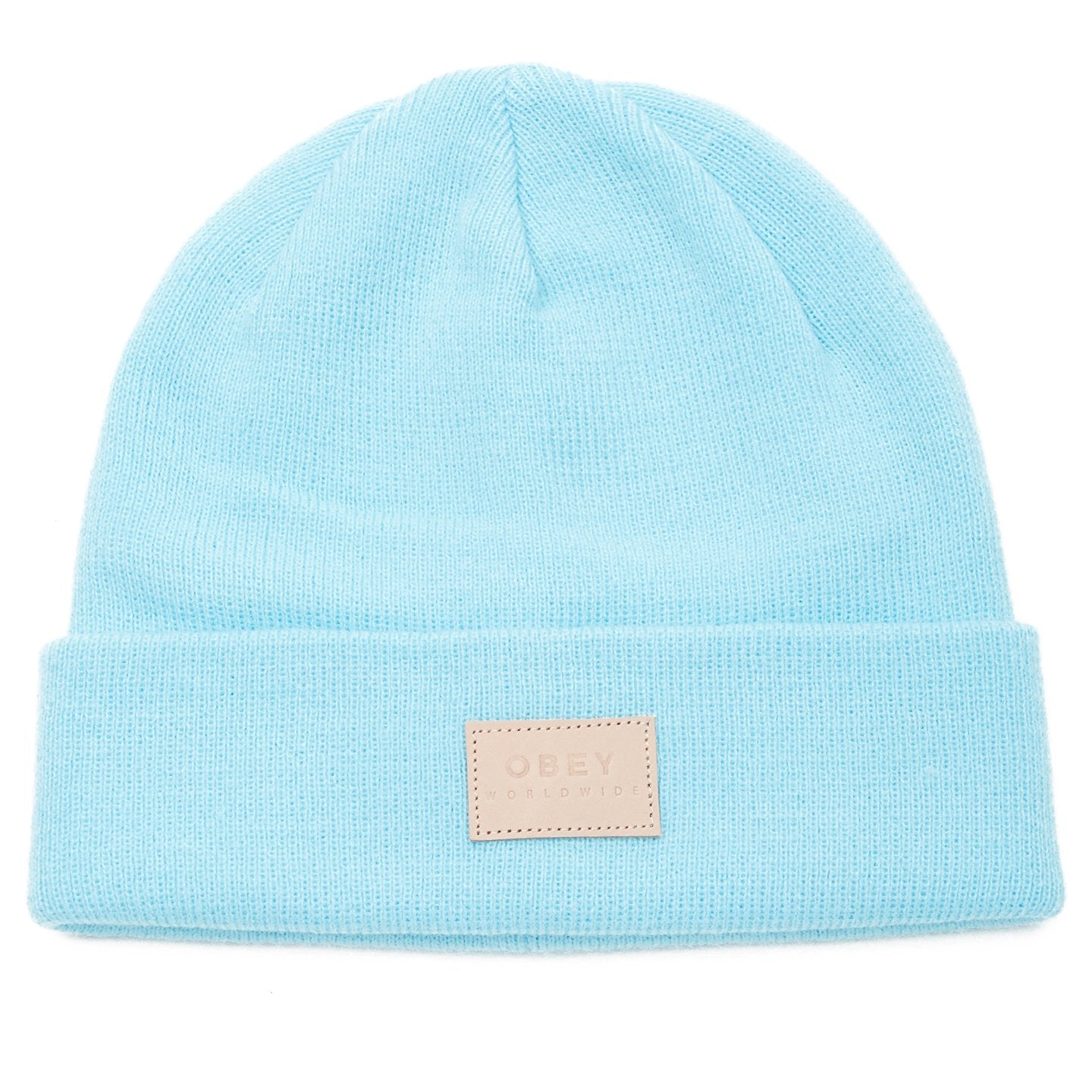 • CLASSIC KNIT BEANIE IN SOLID COLORS, CUSTOM OBEY LEATHER PATCH.